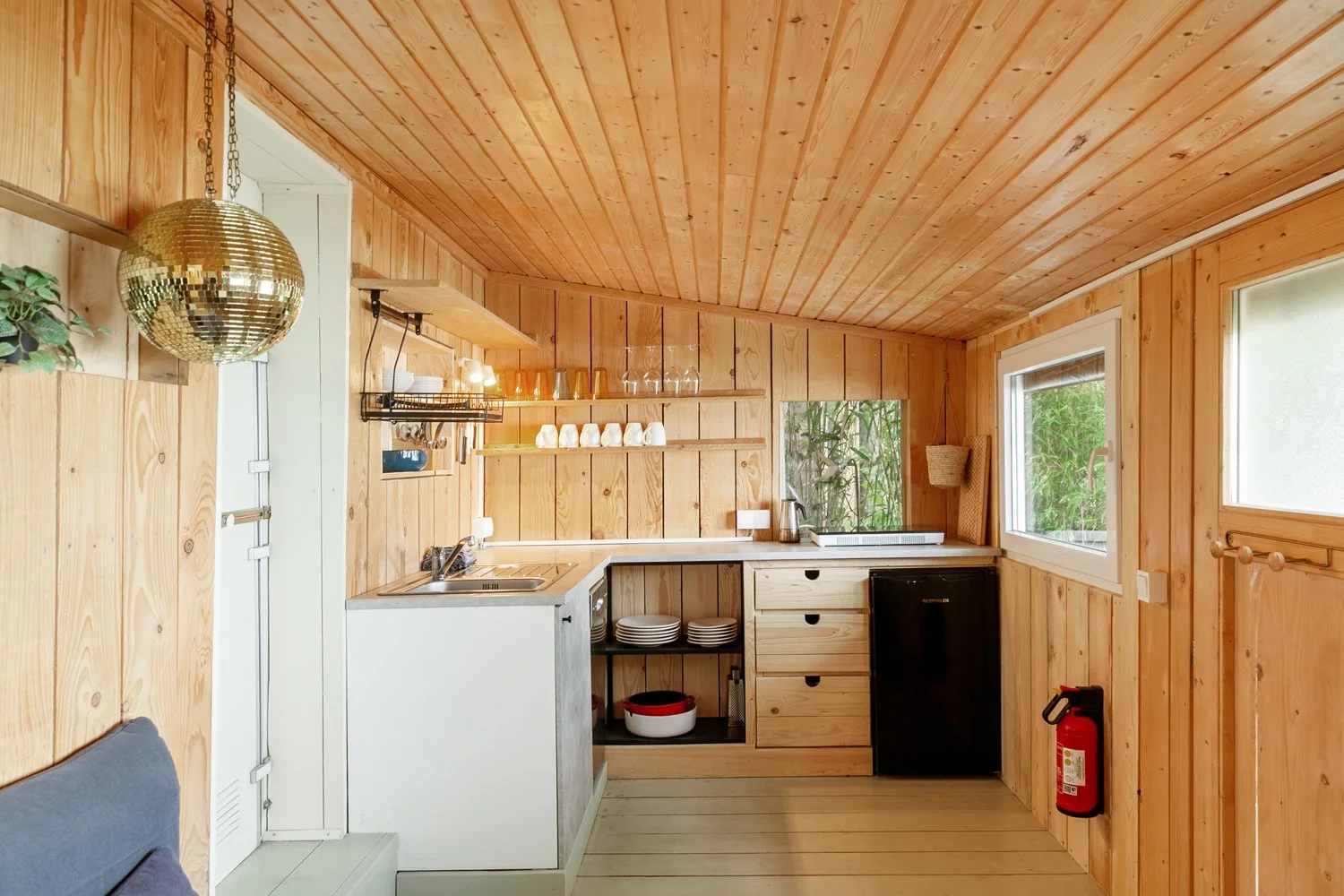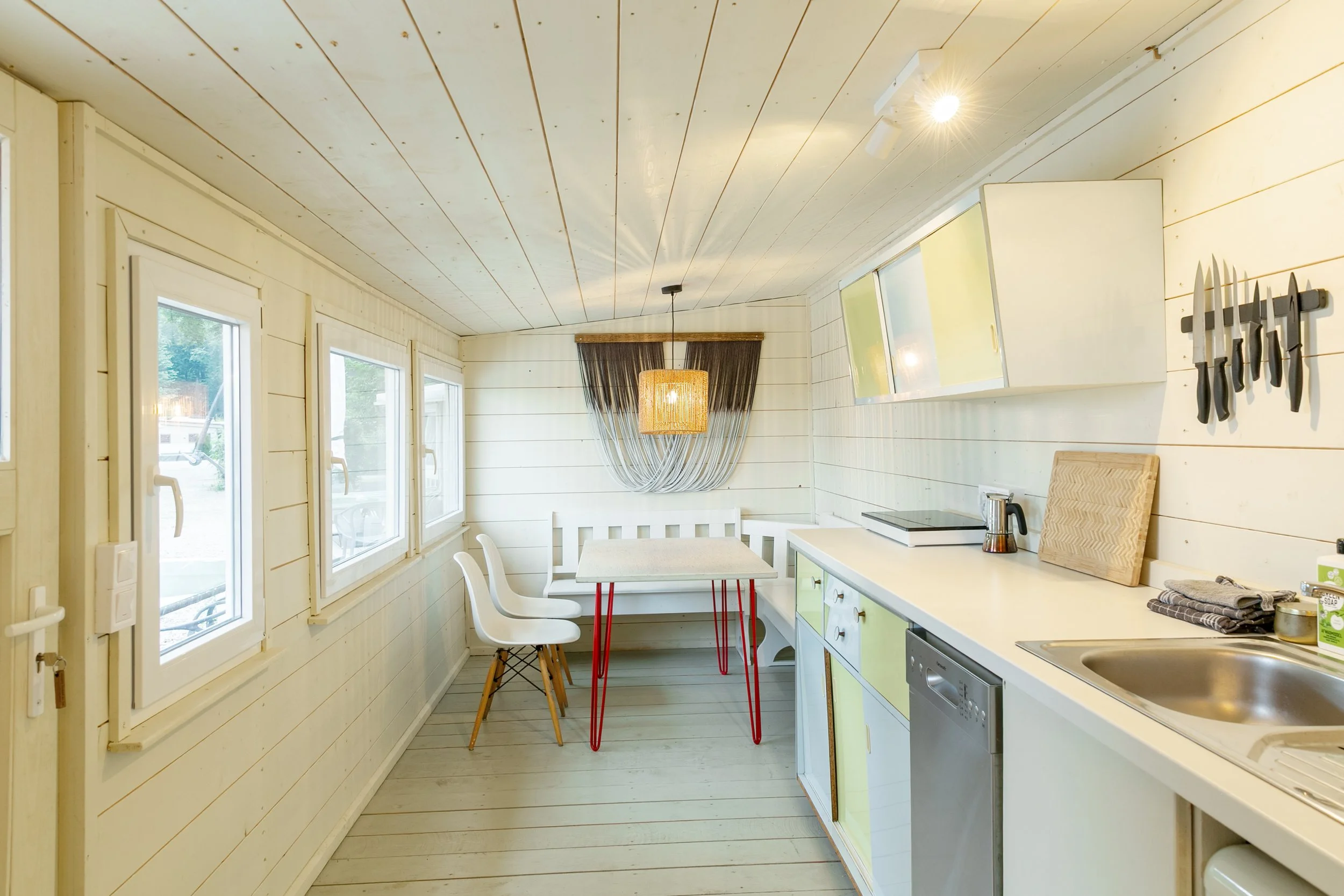 2 Induktionskochfelder, Spülbecken, Kühlschrank, Spülmaschine